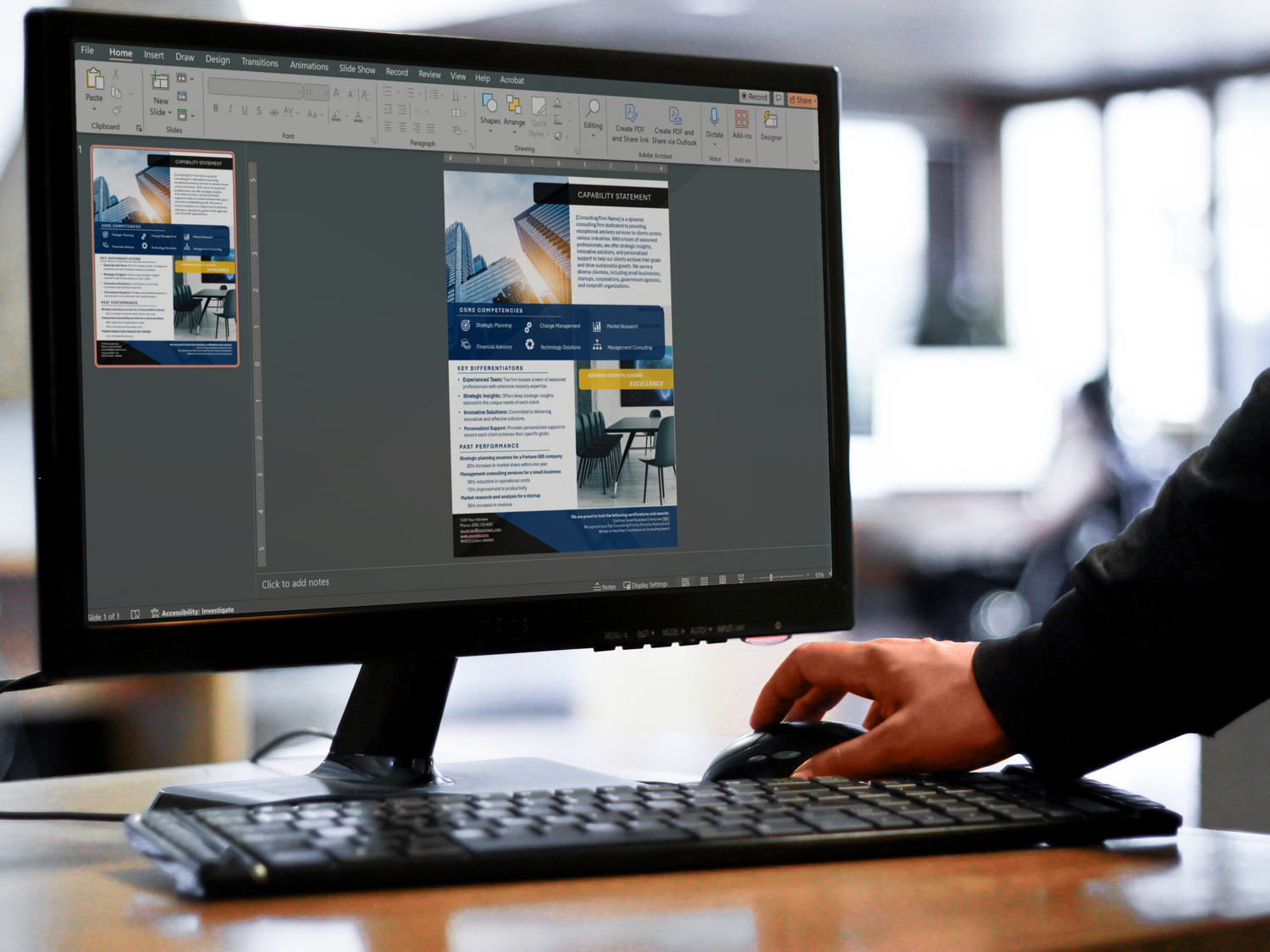 - Communicate Professionalism: World-class design speaks volumes about your attention to detail and commitment to quality, inspiring trust with potential clients and source selection officials.